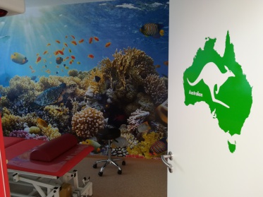 Die jeweils abgeschlossenen Behandlungsräume verfügen alle über Umkleidemöglichkeiten und Tageslicht.